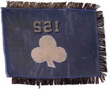 Colonel Leonard Boyer received authority in August 1862 to recruit a regiment from the 20th Senatorial District. Organized at Mohawk, the 152nd Regiment mustered into service in October 1862 for three years. These faded silk markers feature a 2nd Division, 2nd Corps fabric badge pieced into the center. The number appears in reverse when the hoist is positioned on the left. The 152nd Regiment served almost exclusively within the 2nd Division, 2nd Corps from October 1863 to July 1865.