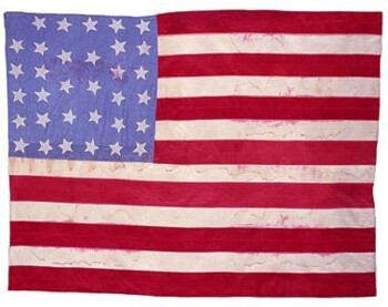 On May 16, 1861, 14 "heroic sisters and sacrificing mothers" from Mount Morris, Livingston County, presented the national color seen here to Company H, 27th New York Volunteer Infantry. The unique, homemade flag includes 33 white, silk stars in the canton, each appliquéd by hand to both sides. The company carried the flag in a dozen battles over two years and in May 1863 returned the flag to the Mount Morris ladies. In January 1864 the ladies transferred the cherish banner to state authorities. Lockwood Doty, from the state's Bureau of Military Statistics, accepted the flag and assured the ladies that, "It is a precious memorial, and shall be preserved with faithful care."