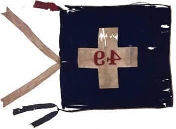 This pair of blue silk flank markers feature the 2nd Division, VI Corps badge in silk sewn to the center within a cut out section. The regiment’s numeric designation in red is sewn to each badge. The number appears in reverse when the hoist edge is positioned on the left. Each flag includes red, white and blue ties along the hoist for attachment to its staff. The 49th Regiment served within the 3rd brigade, 2nd Division, VI Corps, Army of the Potomac from May 1862 until mustered out under Colonel George Selkirk on June 27, 1865 at Washington, D.C.