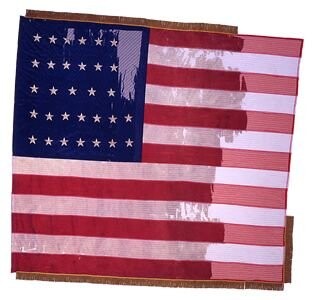 Reportedly first unfurled in October 1864 at Fort McGilvery near Petersburg, Virginia, this national color accompanied the 61st Regiment New York Volunteers during the Siege of Petersburg, June 15, 1864-April 2, 1865, and during the climatic Appomattox Campaign, March 28-April 9, 1865. Four men from the color guard are believed to have received wounds, two mortally, during the campaigns.