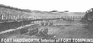 Description: Fort Tompkins (1): 1860, Staten Island. The site was first fortified with a 1663 blockhouse and then during the Revolutionary War as the American redoubt Flagstaff Fort (1776), taken by the British it was enlarged and used to 1783. NYS started a masonry fort in 1807 - 1812. In the early 1840s Cpt. R.E. Lee from Fort Hamilton proposed rebuilding the Staten Island works, which was done in 1860 and named for Governor Daniel Tompkins. Controlled Forts Morton, Hudson, and Richmond (Water Battery, later Battery Weed). Later included as part of Fort Wadsworth.