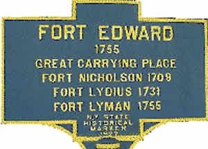 Description: Fort Lyman: This location was the Southern terminus of the "Great Carrying Place", a 11 mile route from the Hudson River (now Fort Edward) to the forks of Wood Creek at Fort Anne leading to Lake Champlain. In 1755 General Lyman built fortifications on the ruins of Ft Lydius named Fort Lyman. Renamed Fort Edward shortly upon completion.