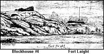 Description: Fort Laight: 1814, New York City. South side of old 125th Street (now LaSalle), North of 124th, 120 yards east of 11th Avenue (present day Morning Side Gardens). Named for Ltc. Edward Laight of the City Militia. This stone fort (probably similar to Fort Clinton at McGowan's Pass) commanded Manhattanville overlooking Harlem Plains. It also covered the Manhattanville Pass in Bloomingdale Road at 123rd street and 100 feet West of 11th Avenue (Broadway). Fort Laight also had entrenchments west through Riverside Park near Grant's Tomb to the Hudson Heights. Picture is 1877 etching by Henry Farrer. See Blockhouse #4 for 1903 photo of same view. Info credit to Eric K. Washington, The Manhattenville Heritage Society
