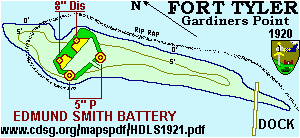 Fort Terry: 1879-1948, Plum Island off North East tip of Long Island. Fortified a number of times from the Spanish American War through World War 2. Coastal Artillery Fort defending approaches to Long Island Sound. Status of batteries in 1921 was;