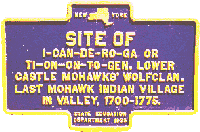 Site of I-Can-De-Ro-Ga or Ti-On-On-To-Geh. Lower Castle Mohawks' Wolfclan. Last Mohawk Indian villiage in valley, 1700-1775.