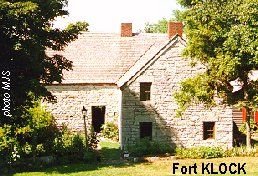 Description: Fort Klock: 1750, St Johnsville, Mongomery County. An L-shaped, story and half stone house with loopholes built by Johannes Klock. Located on Route 10, on the north bank of the Mohawk, one mile east of St Johnsville center and 3/4 miles south of Fort Hess. Fort Klock was restored and is open as a museum. Battle of Klock's Field, October 19, 1780, was just east of the Fort.