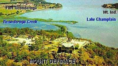 Description: Mount Defiance, 1777, Essex County, Ticonderoga. Occupied by General Burgoyne with cannons from nearby Mount Hope Fort. This position forced the Americans at Fort Ticonderoga to abandon the fort in July 1777.