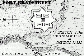 Description: Oswego Falls Palisade: 1758, Oswego County, Village of Fulton. Also called Fort Bradstreet. Believed to have been built in 1758/9 at the carry around Oswego Falls on the east bank of the Onnadaga River (now Oswego River), adjacent to South First Street. Still existed in the 1770s but not used during the Revolutionary War by either side. West part was destroyed by the construction of the Oswego Canal in 1820.