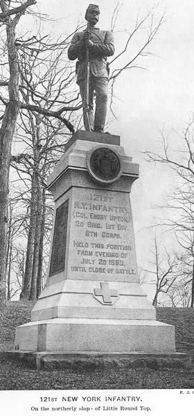 Front - 121ST N. Y. INFANTRY, (COL. EMORY UPTON) 2D BRIG. 1ST DIV. 6TH CORPS. HELD THIS POSITION FROM EVENING OF JULY 2D 1863, UNTIL CLOSE OF BATTLE.
