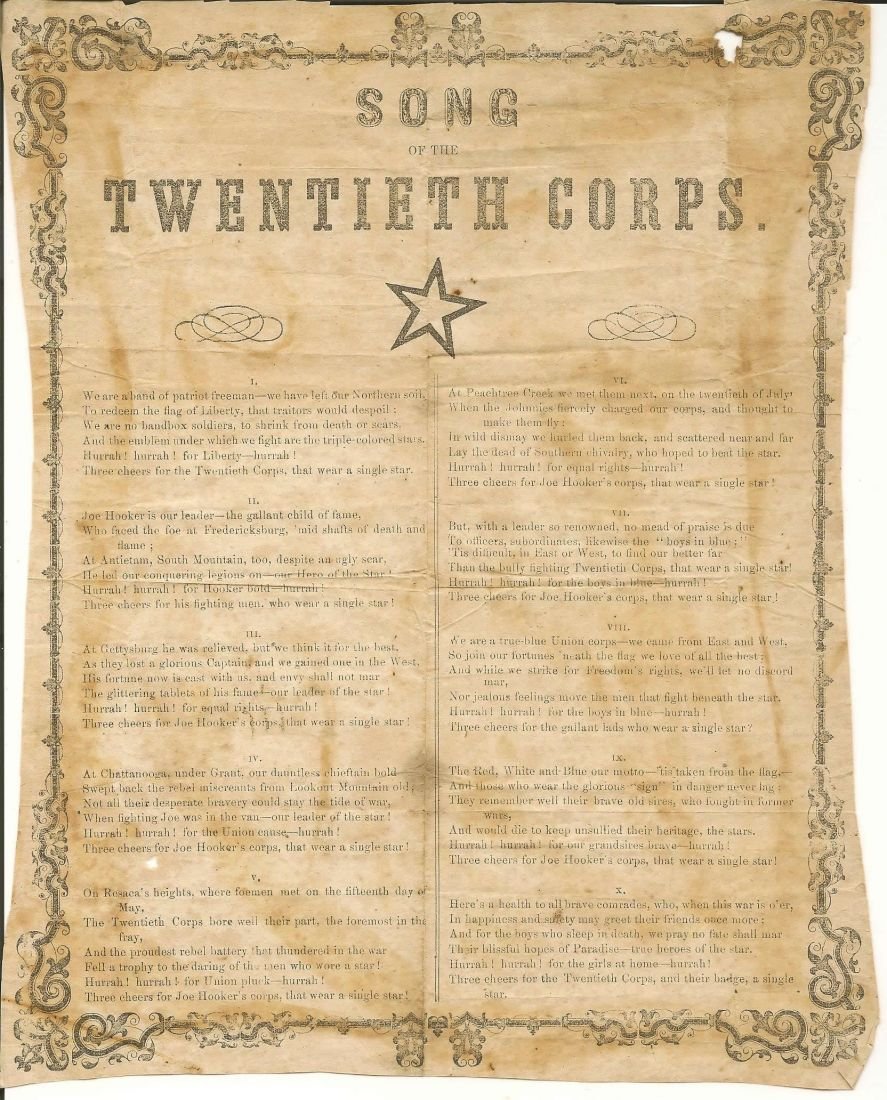 Song of the Twentieth Corps - 149th New York Infantry Regiment Scan Donated By Marilynn Wienke A printable version is here. 149th New York Infantry Regiment's Monument at Gettysburg 149th New York Infantry Regiment's Civil War Newspaper Clippings Back to Unit